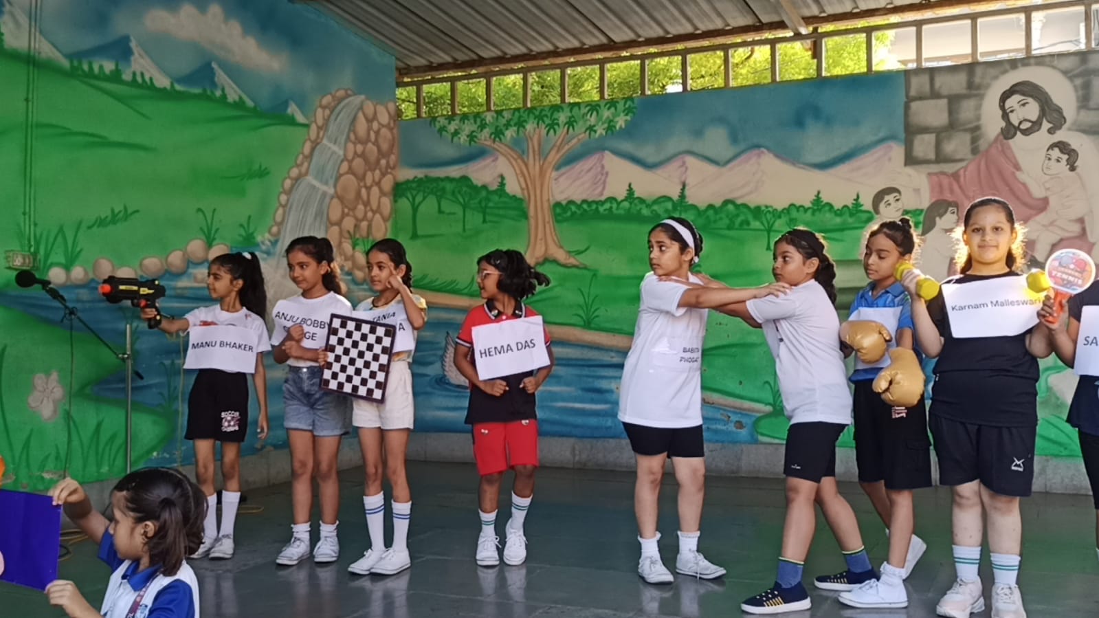 Class 2B held a vibrant weeklong assembly on the theme "Sports Spectacular." Each day focused on the importance of sports, with students highlighting the importance of teamwork, fitness, and fair play. A special assembly was conducted on National Sports Day to commemorate the birth anniversary of Major Dhyan Chand, India’s hockey legend. The assembly included the thoughts for the day, a short poem highlighting the importance of sports and fitness in daily life and also a short performance introducing various Indian women sports stars.