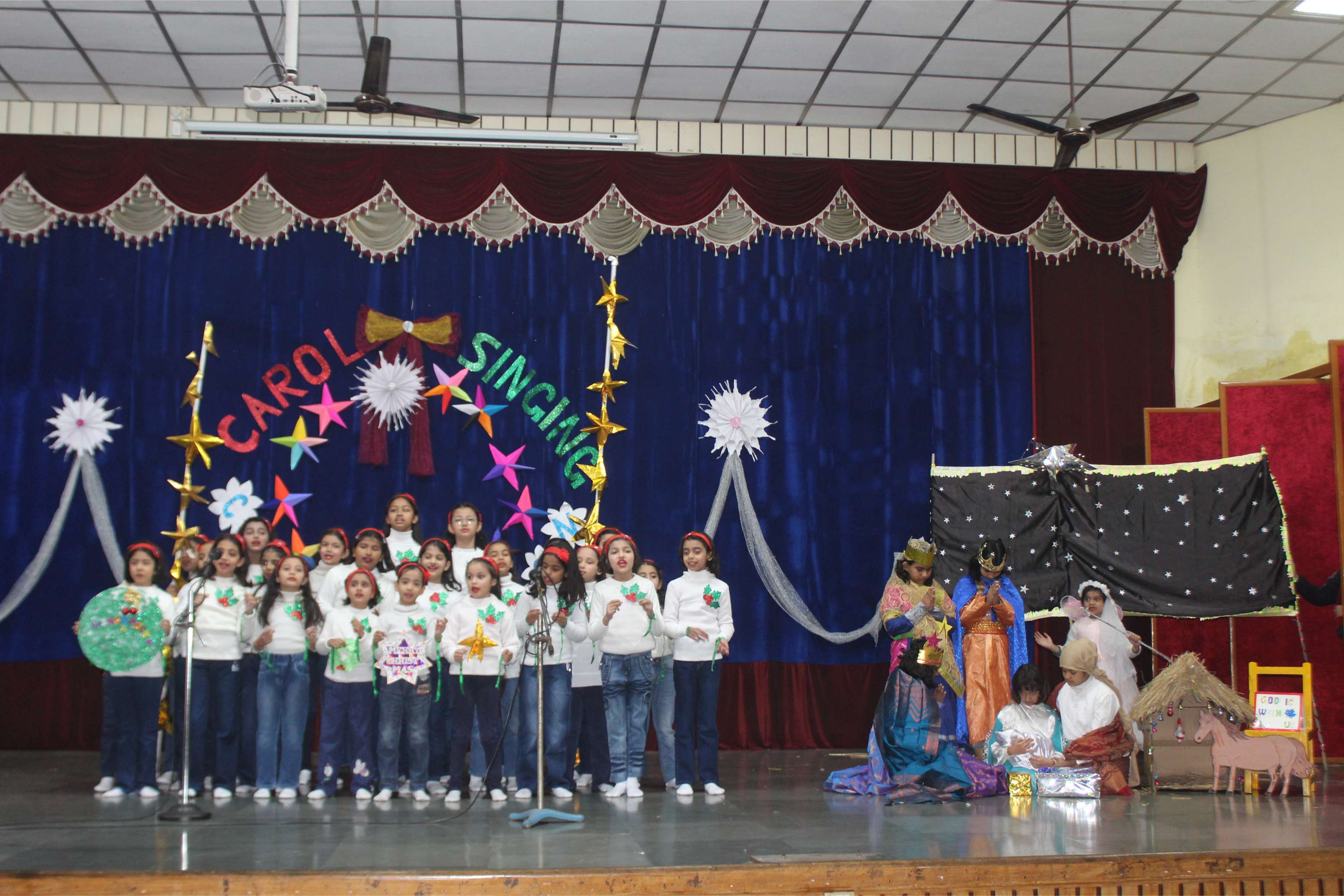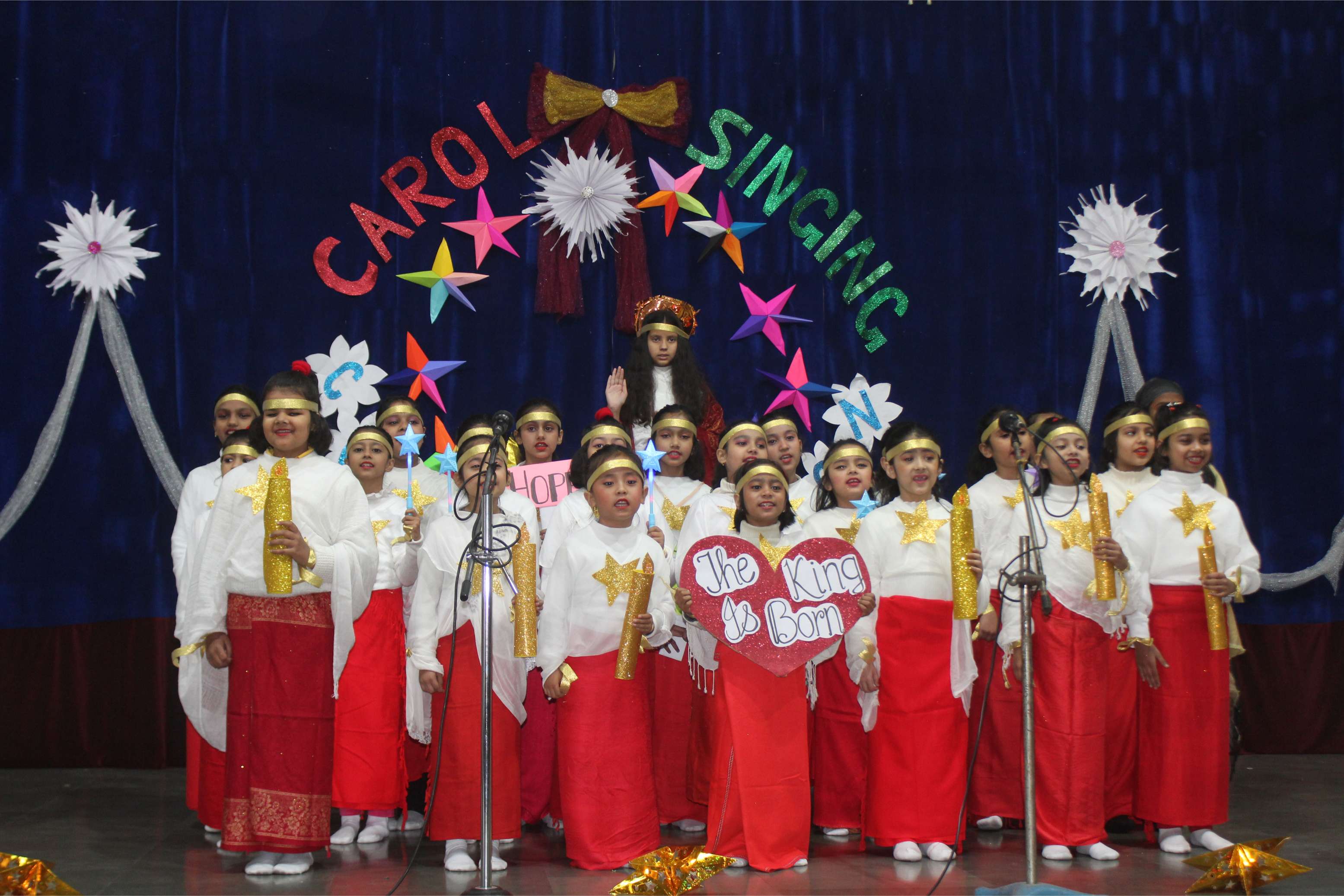 With Christmas around the corner, an inter - house Carol Singing Competition for the entire school was held on 19th December 2025. The participants from grade I to grade 4 put forth an enthralling performance. The competition was held house wise and all the 4 houses did marvellous singing. The venue wasi the school auditorium and it lasted from 8:30 to 11:00am. The competition was judged by Ms. Lizy James, the school coordinator and the school IT head Mr. Tanishq. The occasion was graced by the Vice Principal Sr. Bhavana and Sr. Flavia.