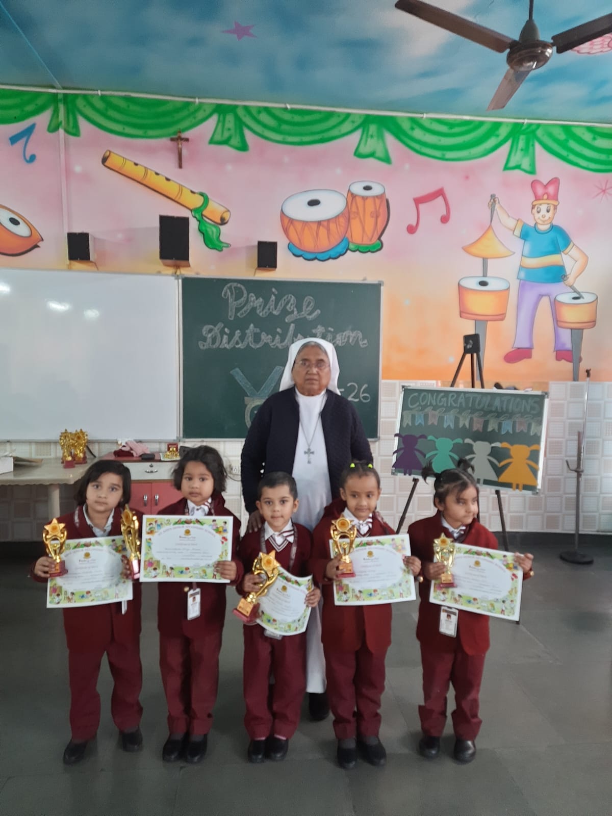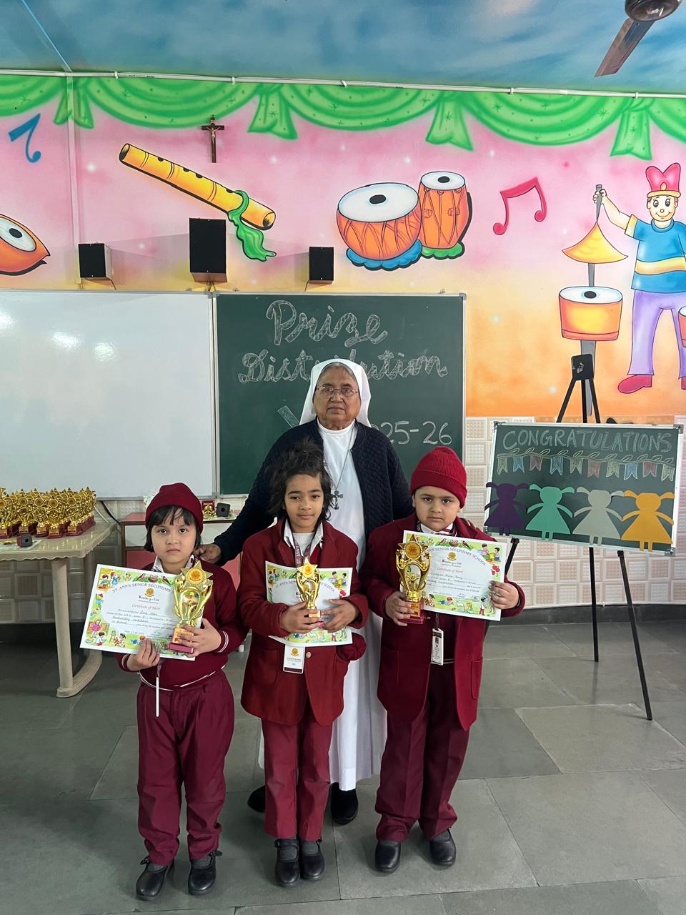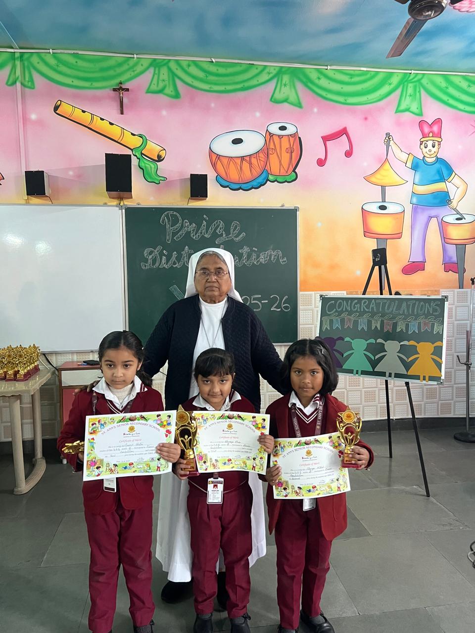 The Prize Distribution Ceremony of the Kindergarten was a joyful and memorable event filled with excitement and pride. The tiny achievers were honoured by Sr. Flavia for their talents and hard work in various competitions that took place the entire year. The event encouraged young learners to participate actively and build confidence. It was a proud and delightful moment for the teachers and students.