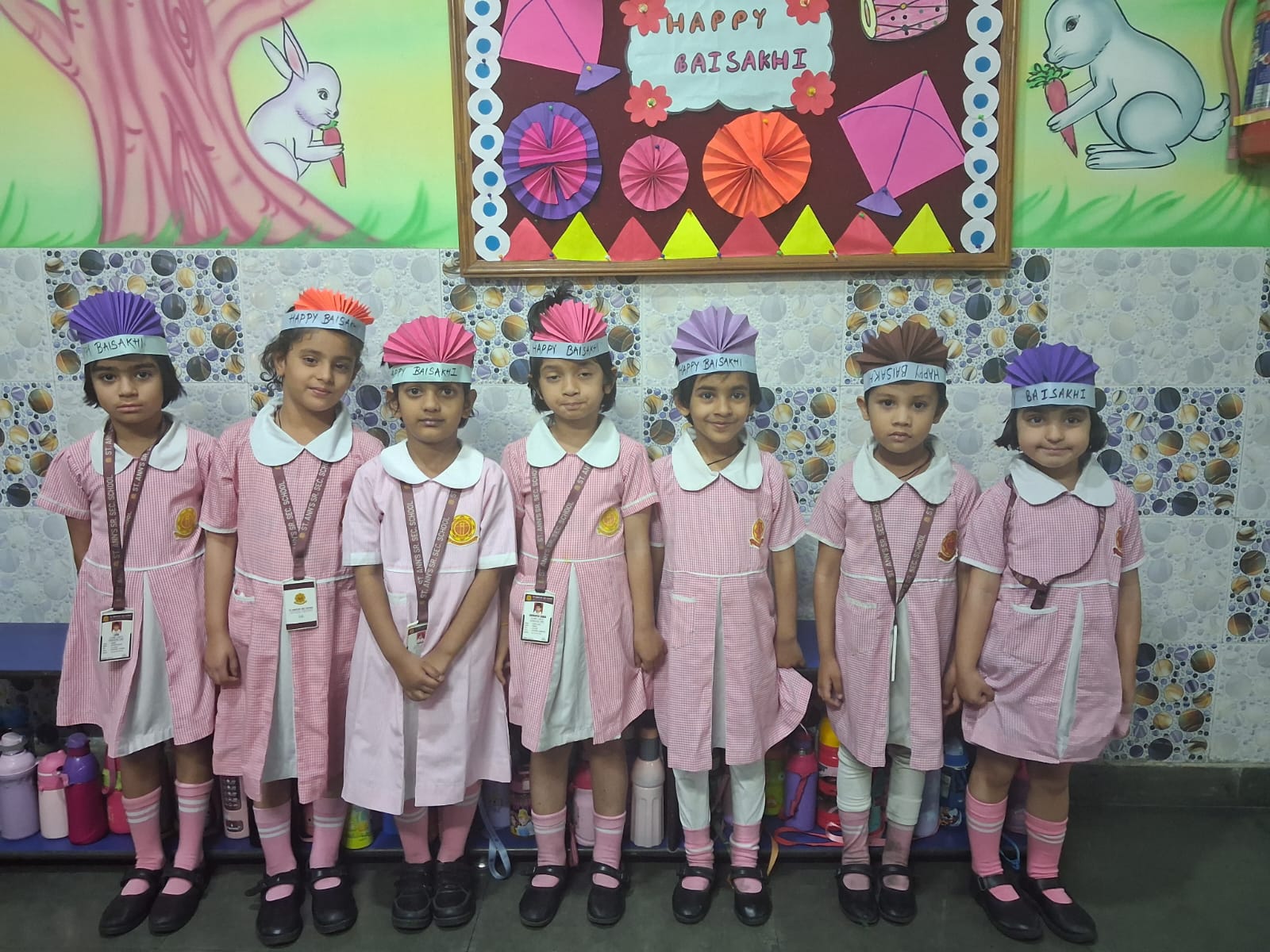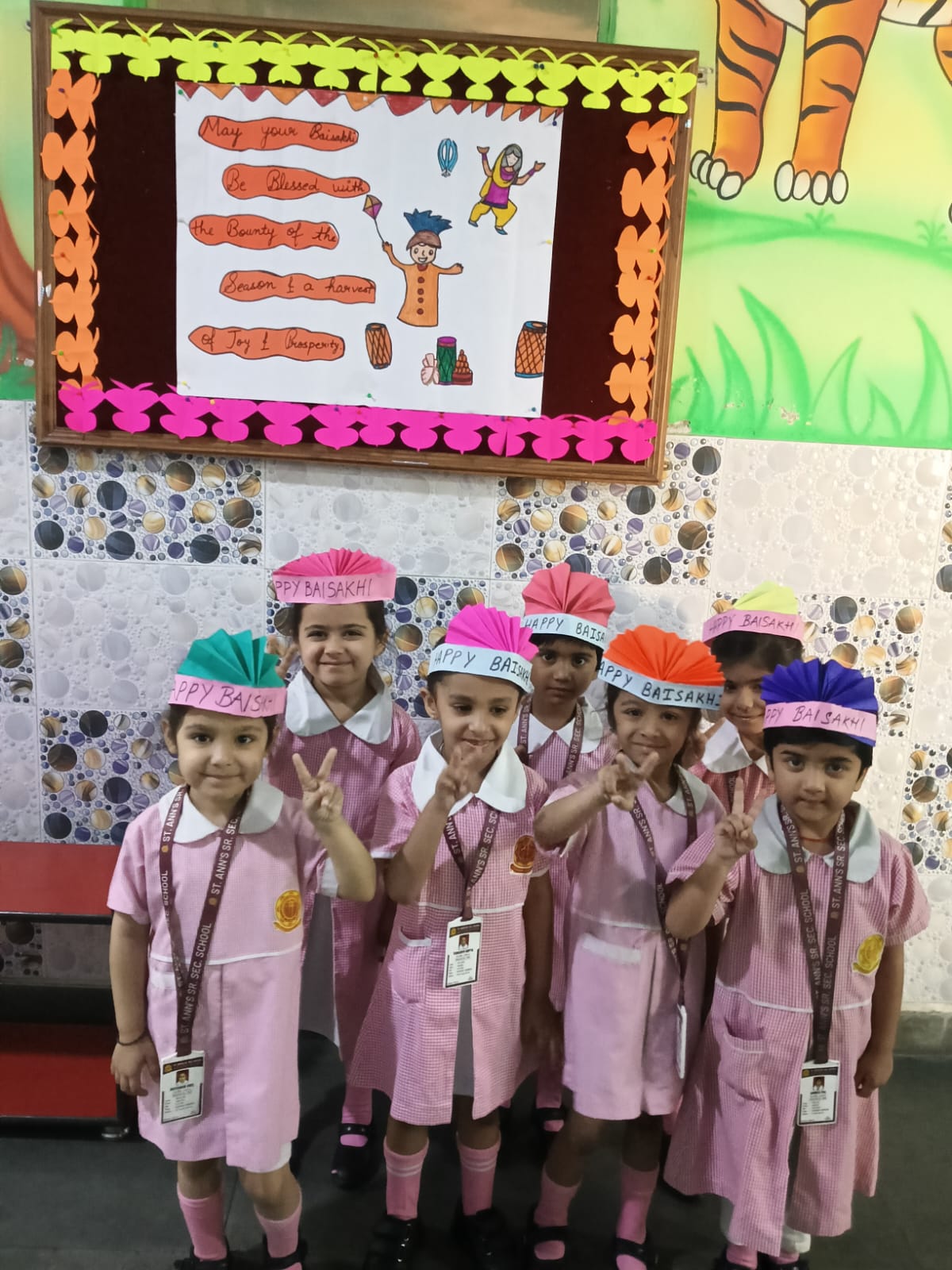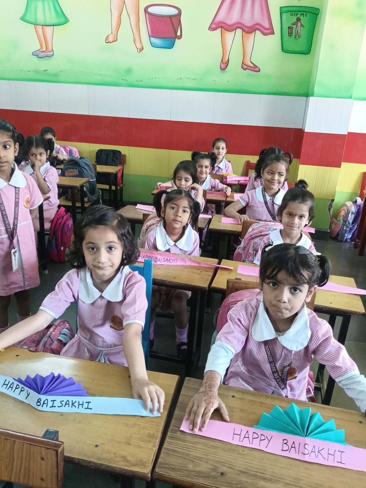 The KG students participated in a Baisakhi craft activity with great enthusiasm. They created beautiful and colorful craft samples like Fan shaped turban, finger tipping in corn, decorating the paper hand fan etc. related to the festival, showcasing their creativity and improving their fine motor skills. The activity also helped in enhancing their concentration and imagination. Through this hands-on experience, the children were introduced to the significance of Baisakhi in a simple and engaging way.