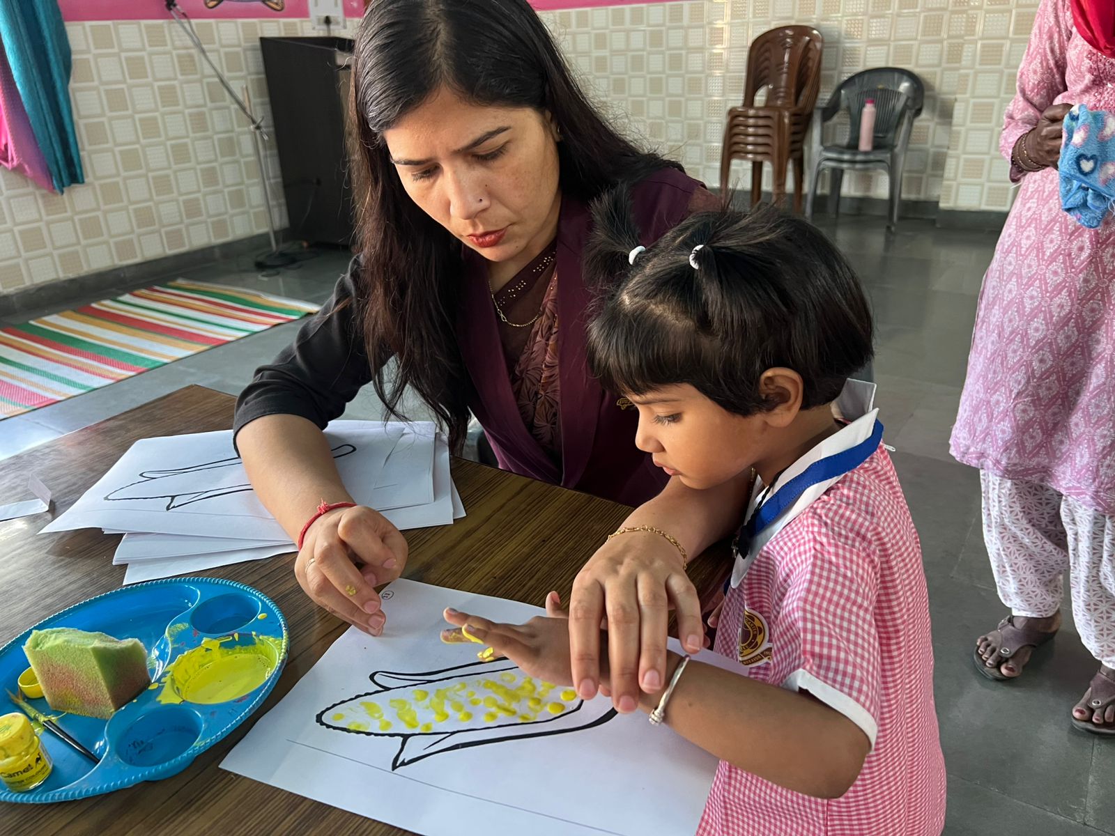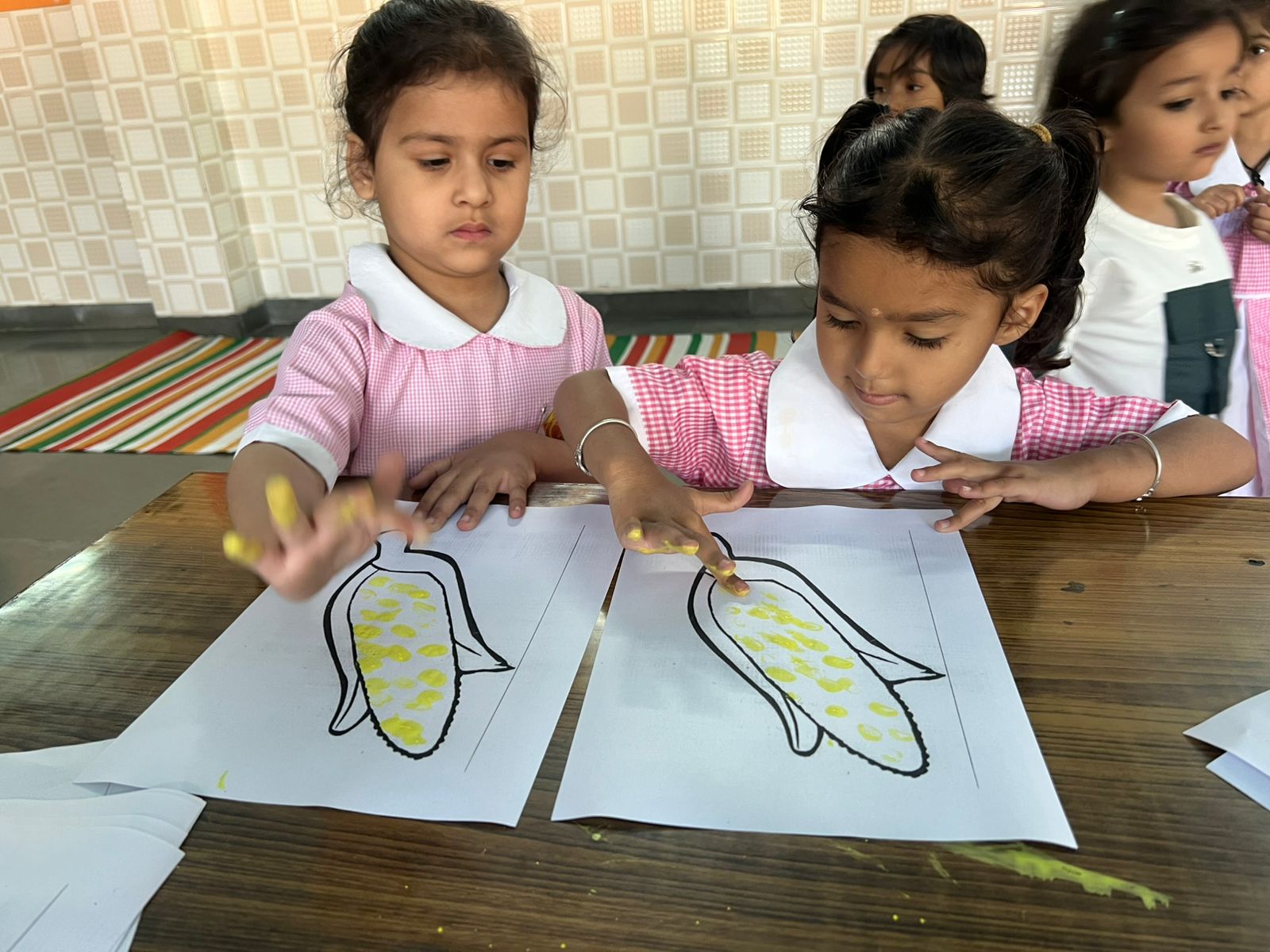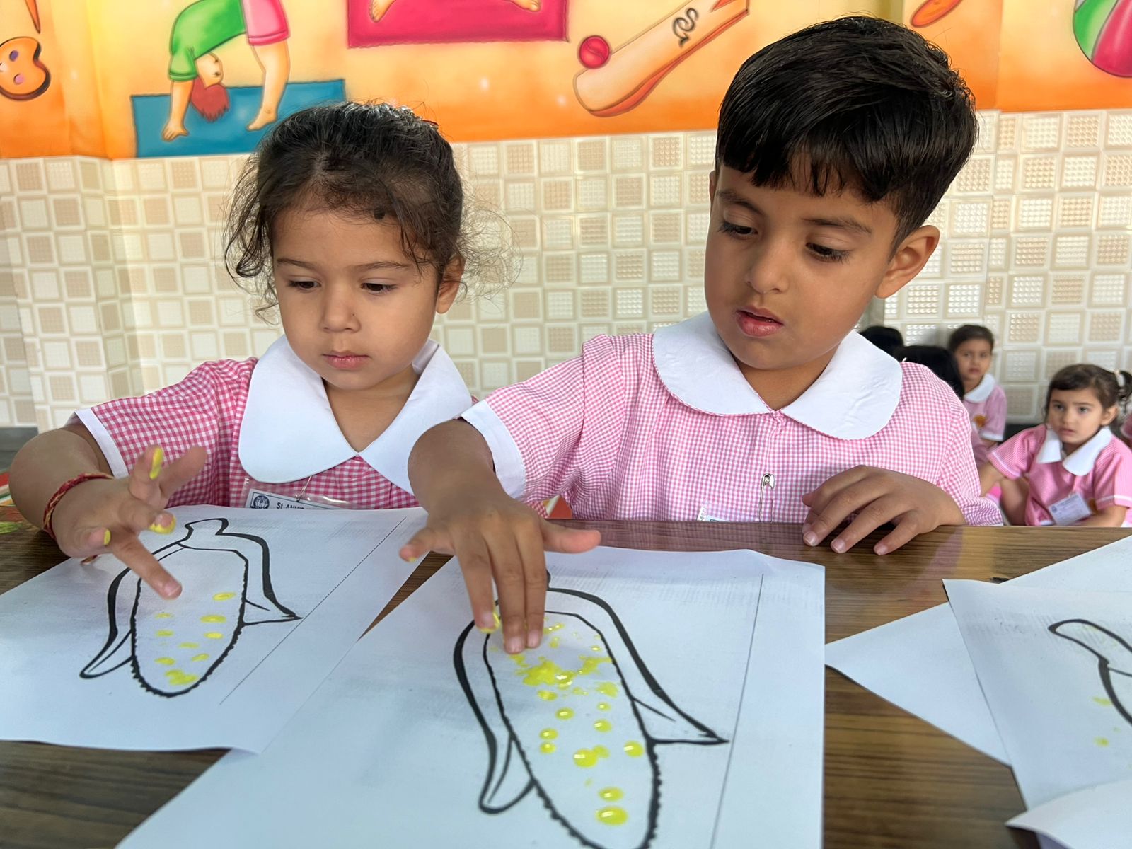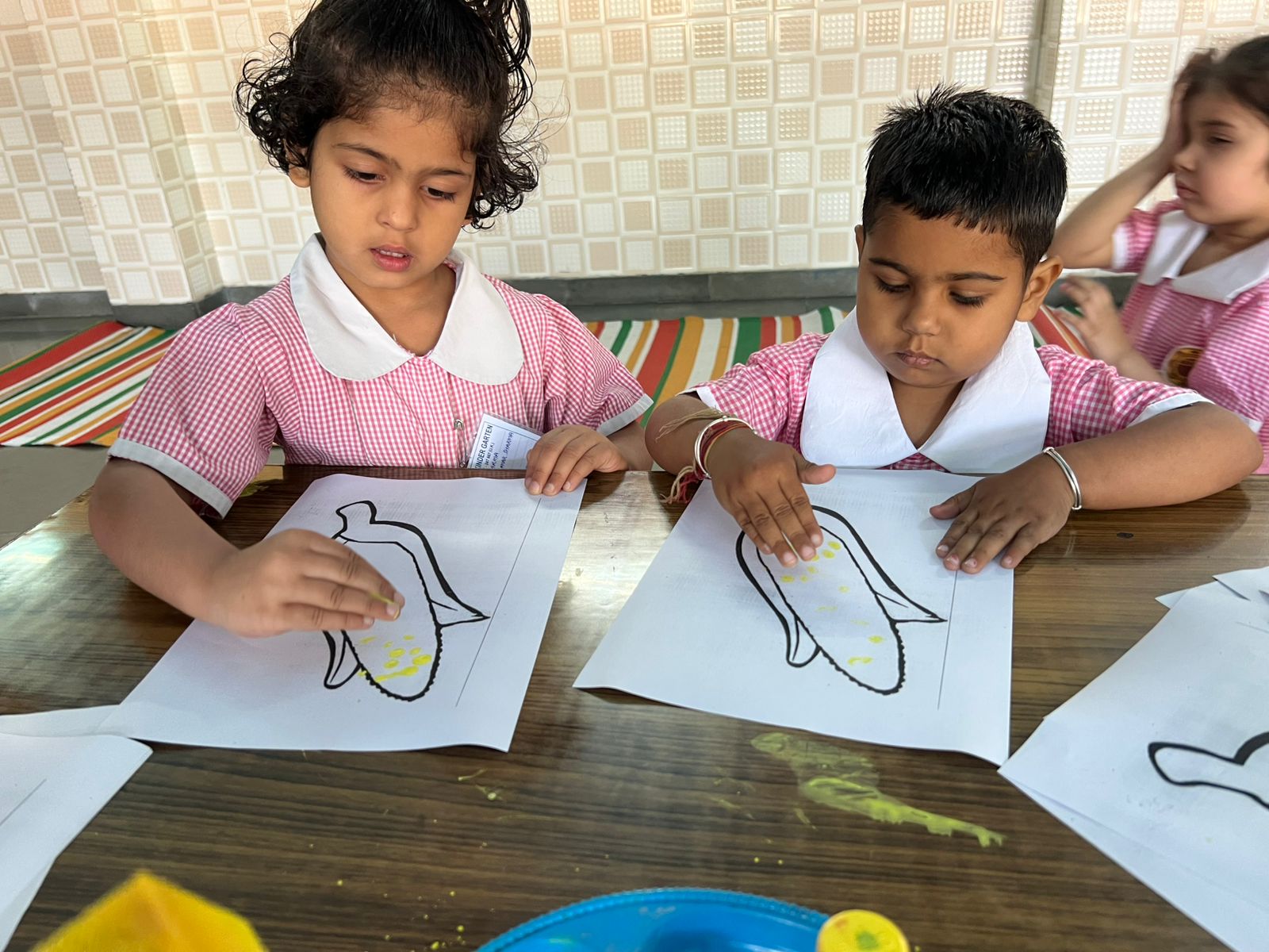 The KG students participated in a Baisakhi craft activity with great enthusiasm. They created beautiful and colorful craft samples like Fan shaped turban, finger tipping in corn, decorating the paper hand fan etc. related to the festival, showcasing their creativity and improving their fine motor skills. The activity also helped in enhancing their concentration and imagination. Through this hands-on experience, the children were introduced to the significance of Baisakhi in a simple and engaging way.