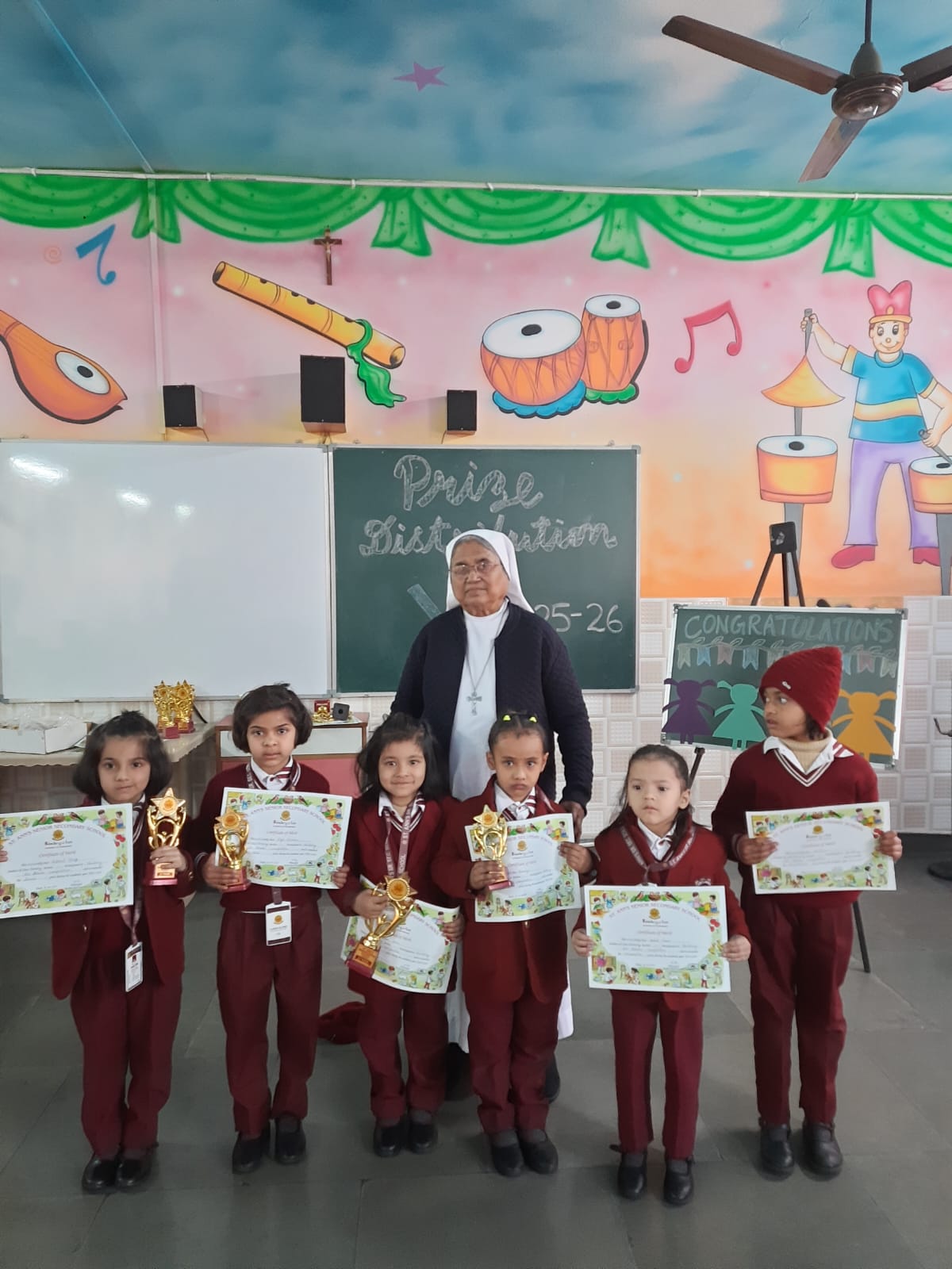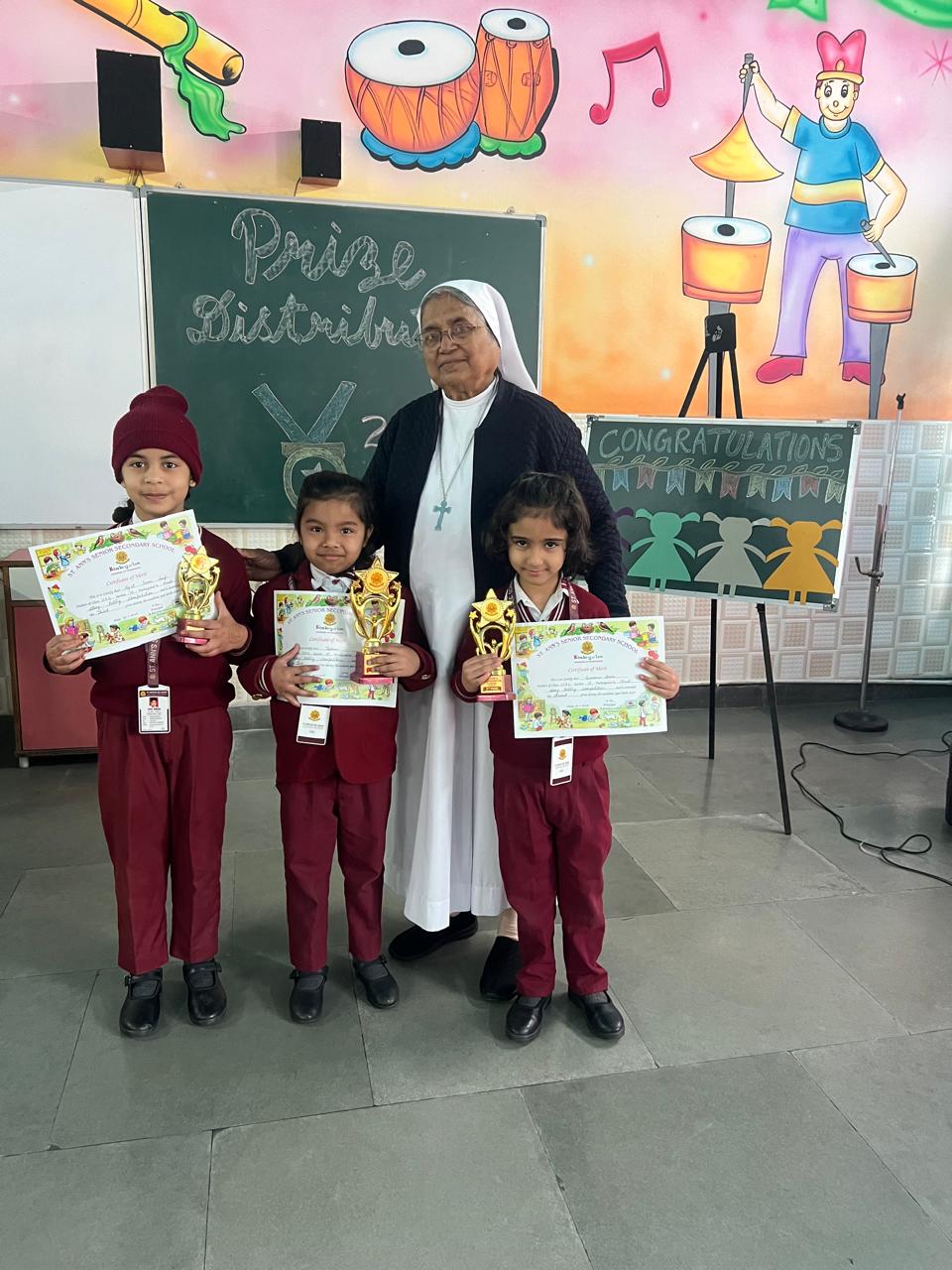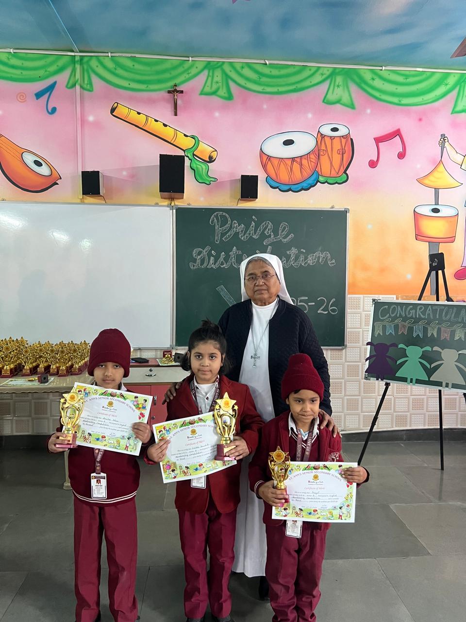 The Prize Distribution Ceremony of the Kindergarten was a joyful and memorable event filled with excitement and pride. The tiny achievers were honoured by Sr. Flavia for their talents and hard work in various competitions that took place the entire year. The event encouraged young learners to participate actively and build confidence. It was a proud and delightful moment for the teachers and students.